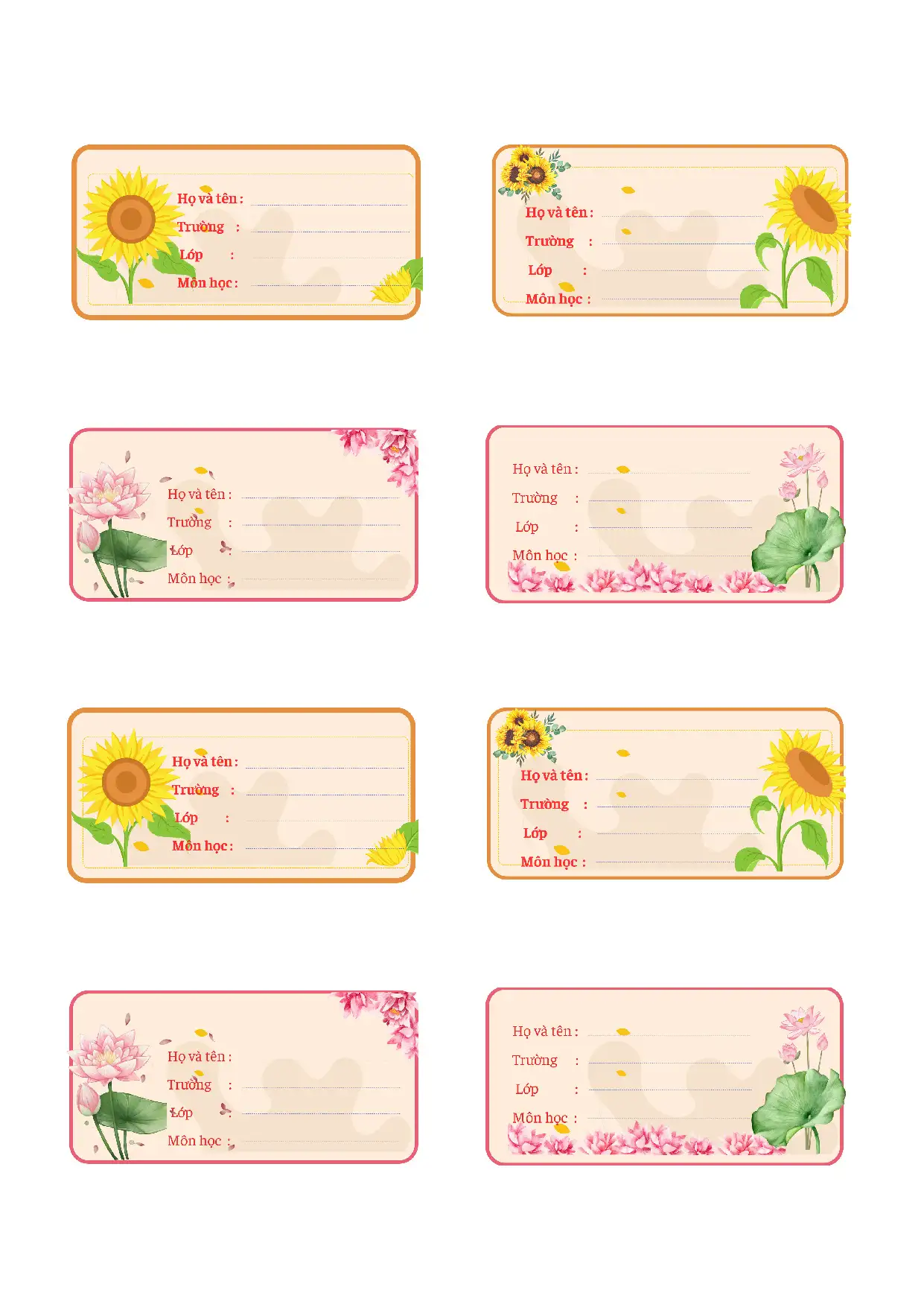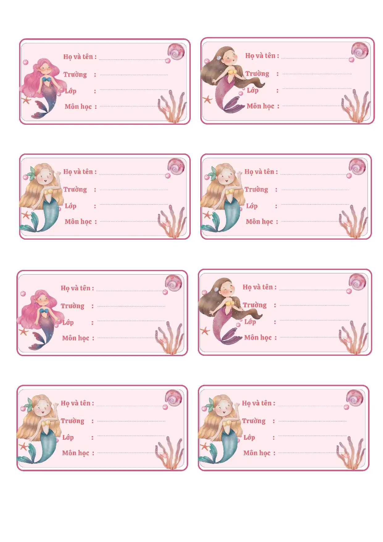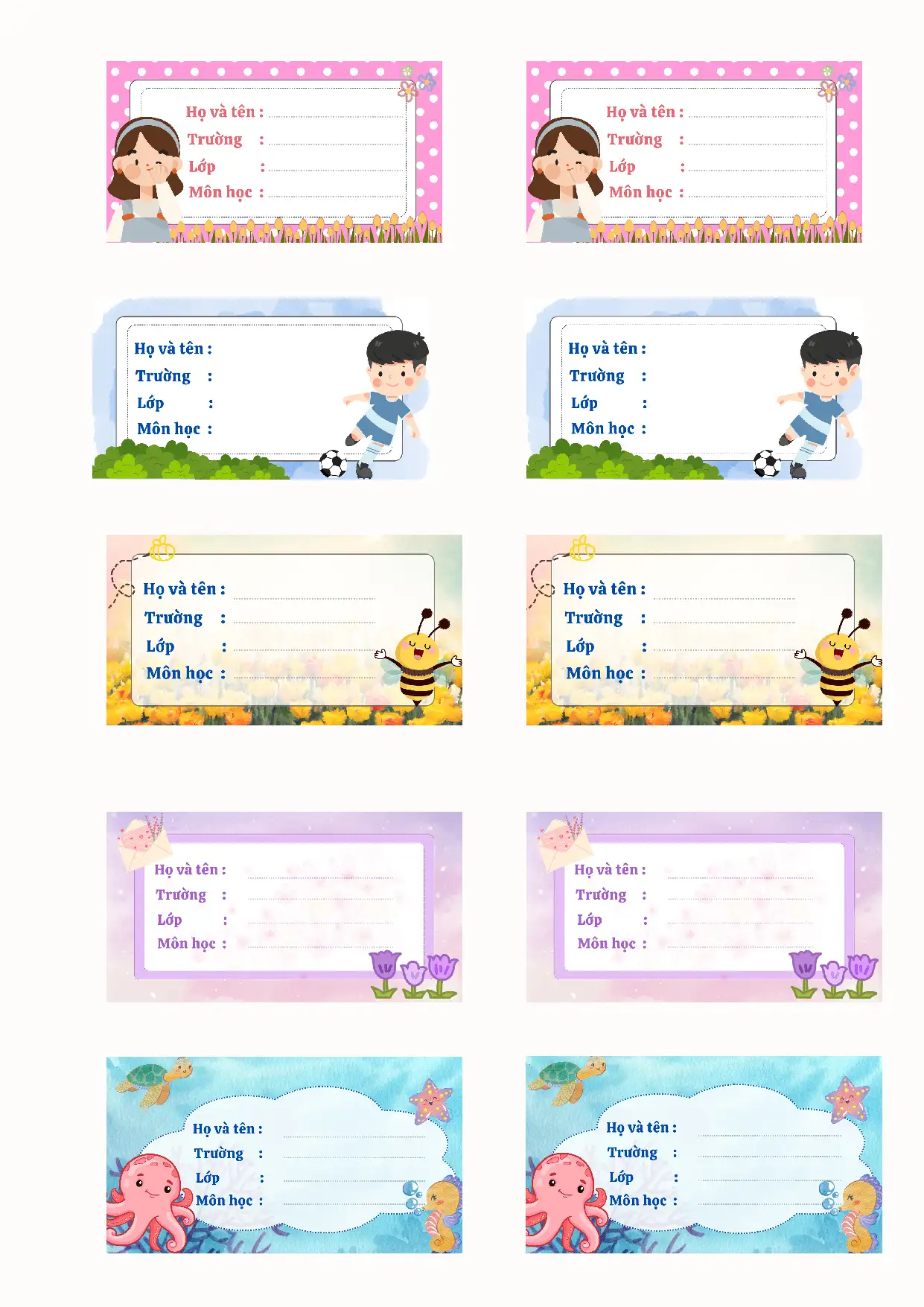Bộ mẫu nhãn vở đẹp file PDF gồm 11 trang là giải pháp tiện lợi, thẩm mỹ và tiết kiệm thời gian cho phụ huynh và giáo viên. Với thiết kế dễ thương, rõ ràng và in ấn sắc nét, đây là tài liệu không nên bỏ qua cho học sinh tiểu học.