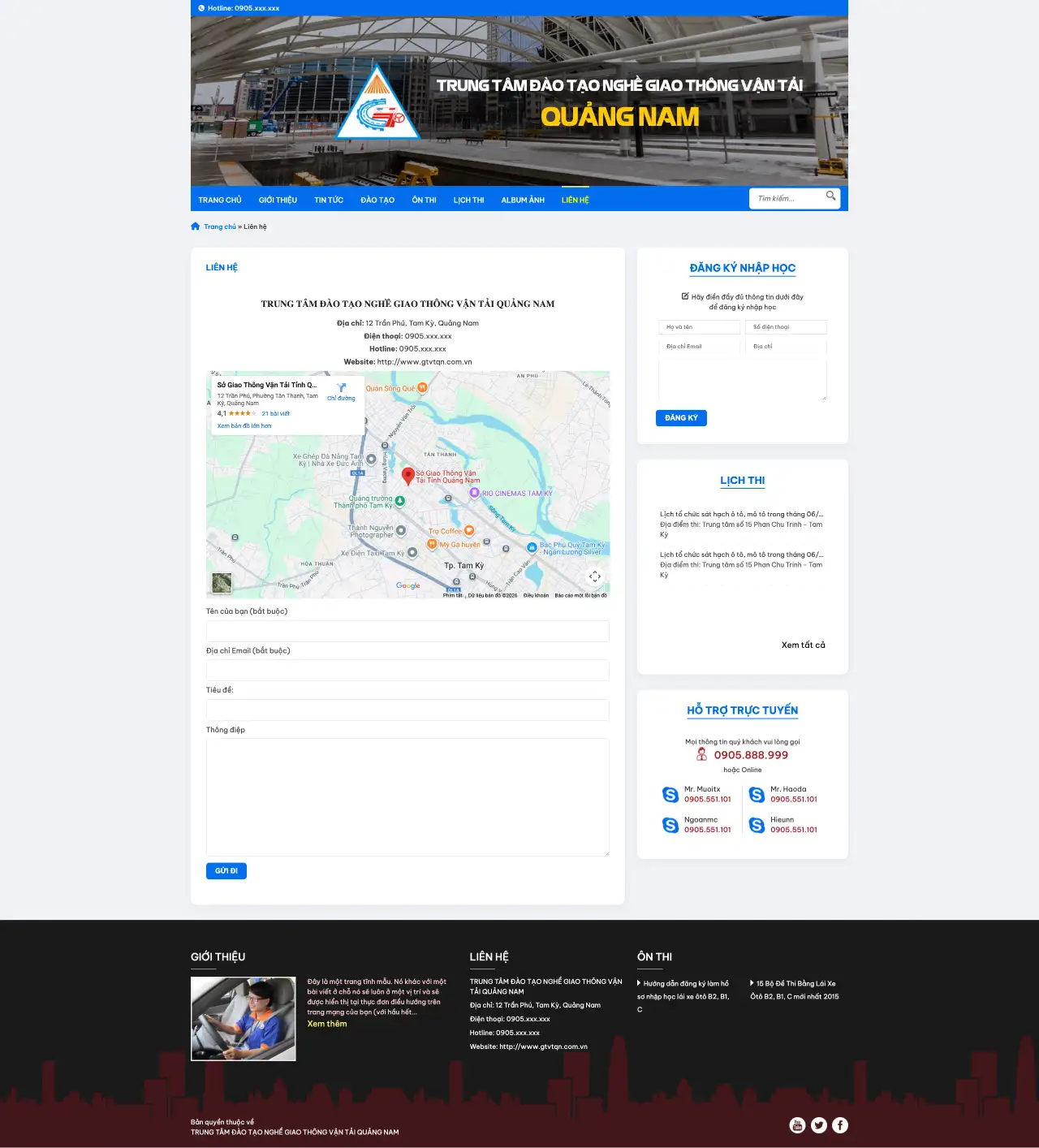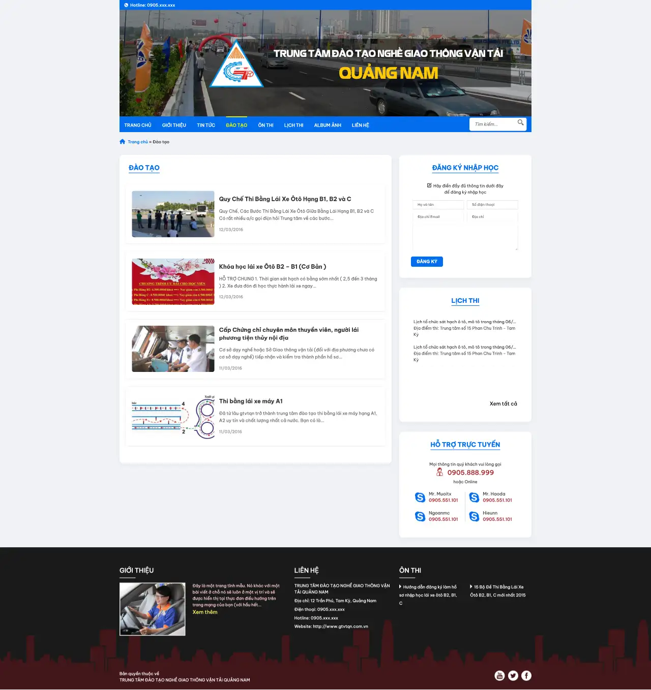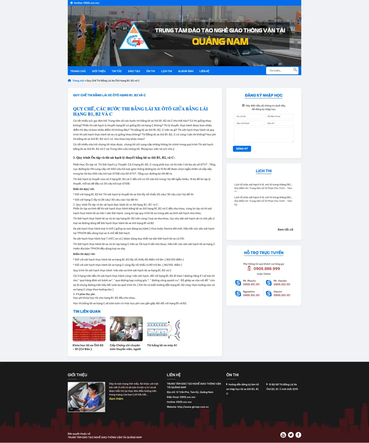 Mẫu web trung tâm đào tạo lái xe được xây dựng trên nền tản WordPress mới nhất. Website chuẩn seo online giao diện phù hợp để làm các website về trung tâm đào tạo. Cổng thông tin điện tử của tổ chức.