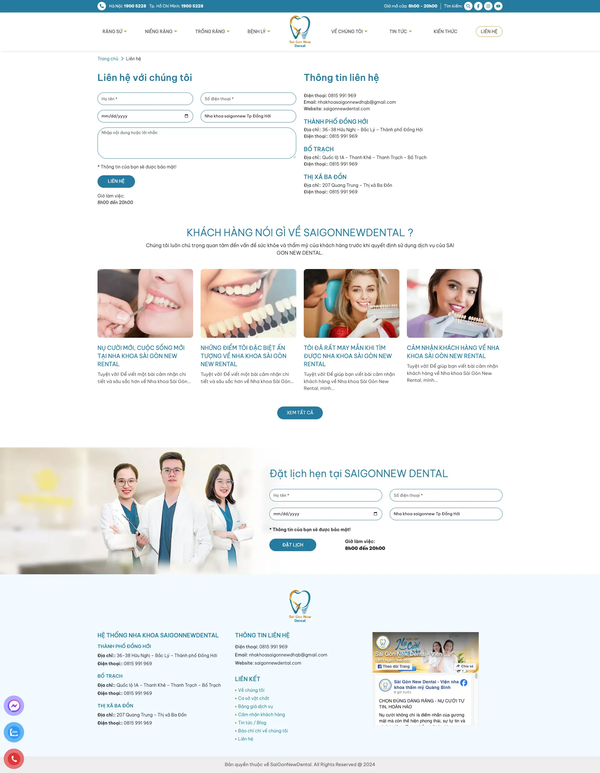 Trang liên hệ & đặt lịch hẹn trực tuyến