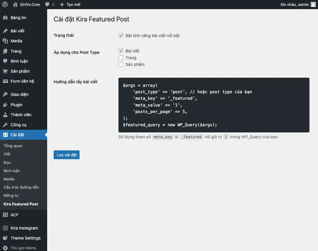 Giới thiệu với mọi người plugin bài viết nổi bật với các tính năng sau: