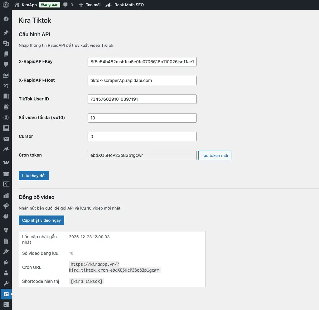 Nếu bạn đang quản lý website WordPress và muốn hiển thị video TikTok trực tiếp trên web, cập nhật video mới hoàn toàn tự động thì plugin Đồng bộ TikTok về WordPress của KiraApp là giải pháp phù hợp.