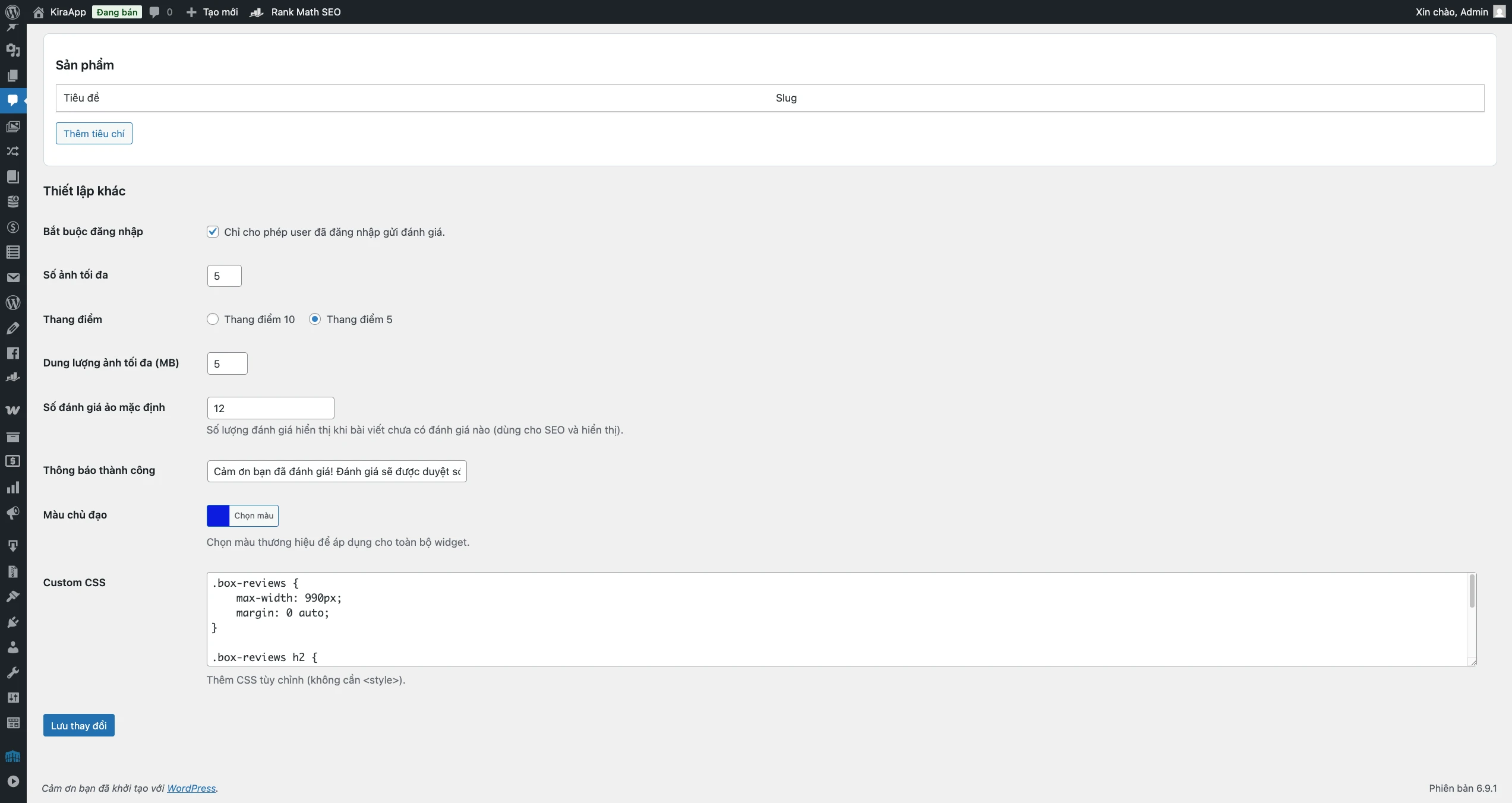 Bạn đang tìm kiếm một giải pháp mạnh mẽ để thu hút đánh giá sản phẩm, dịch vụ, hoặc bài viết trên website WordPress của mình? Kira Plugin Review WordPress chính là câu trả lời hoàn hảo. Với khả năng tạo form đánh giá chuyên nghiệp, tích hợp schema Google và tối ưu SEO review, plugin này sẽ giúp bạn tăng tương tác, cải thiện thứ hạng tìm kiếm và xây dựng niềm tin với khách hàng.