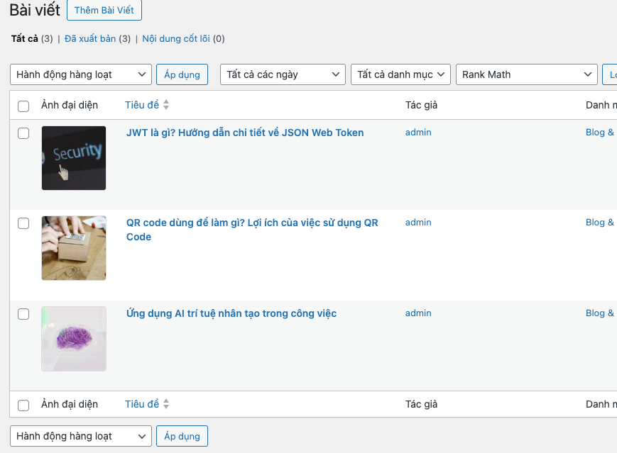 - Hiển thị cột ảnh đại diện ở danh sách bài viết và post type
